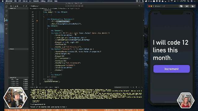 This pattern is ideally suited for hot reload as you can see below with added styling, gradients, and fonts with instant hot reload from C#.